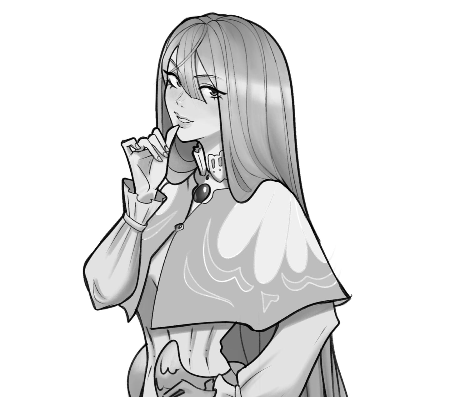 sketch - clean black & white drawing focused on expressive linework and character personality.